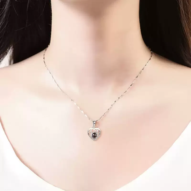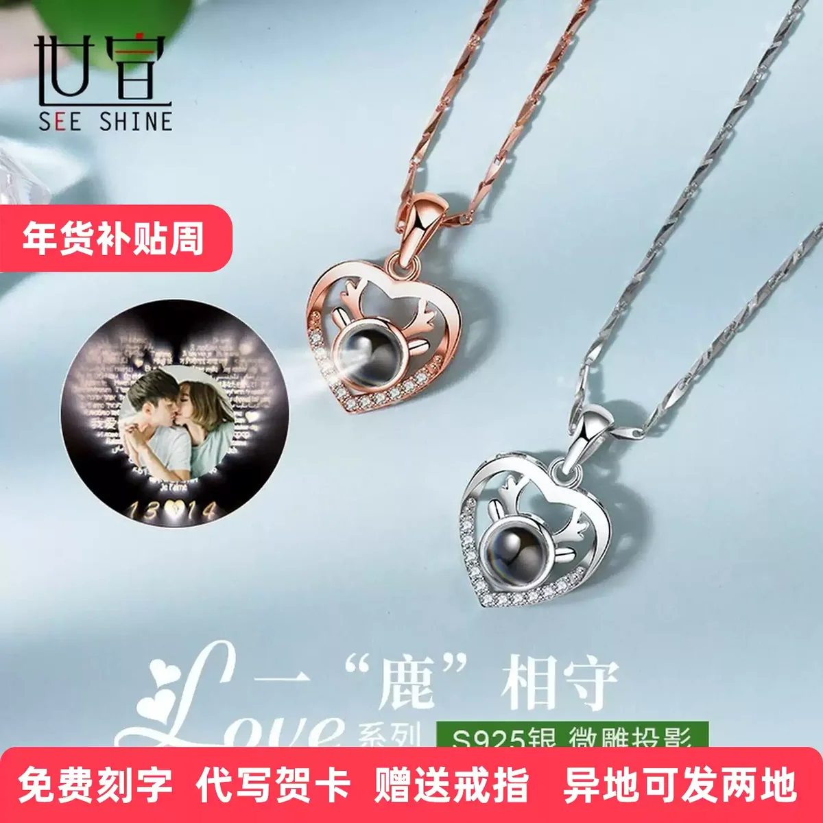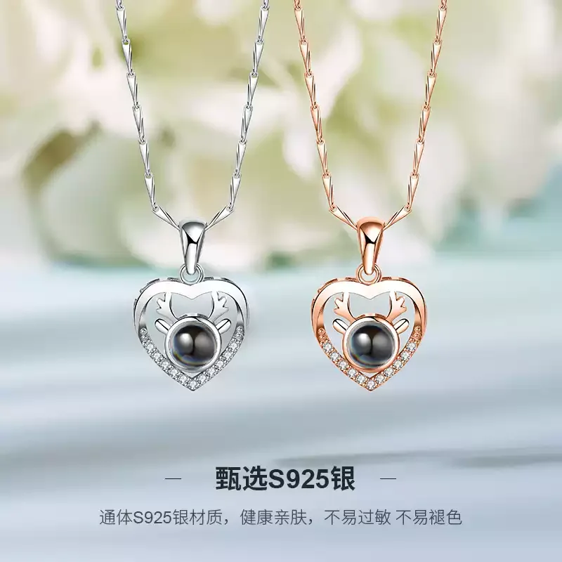 一路鹿有你投影项链定制女纯银纳米微雕照片生日情人节礼物送女友